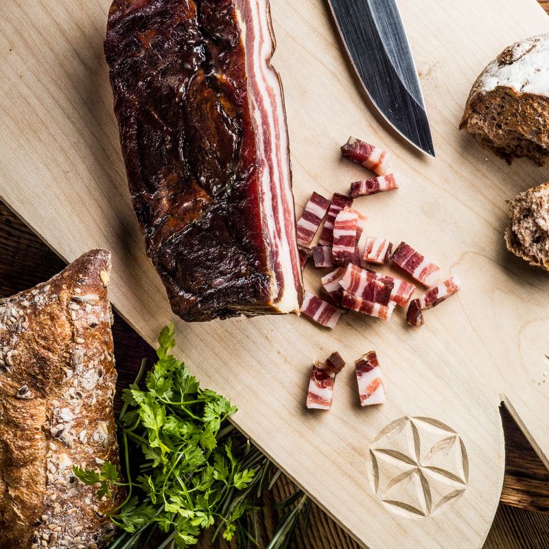 Luftgetrocknet, mit Buchenholz in der Reibrauchanlage geräuchert oder traditionell mit Holz aus einheimischen Wäldern in der "guten alten Rauchkammer" veredelt.